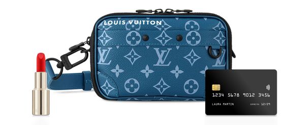 Ce portefeuille Alpha Wearable en toile Monogram bleue comporte une doublure de couleur contrastée. Doté d'une bandoulière ajustable et amovible, il se compose de deux compartiments zippés et d'une poche plate sur le devant. De nombreux détails classiques de la Maison sont présents tels que des renforts de fond, des rivets et un anneau demi-rond. La signature « Louis Vuitton » en lettres blanches complète le modèle.