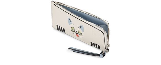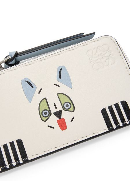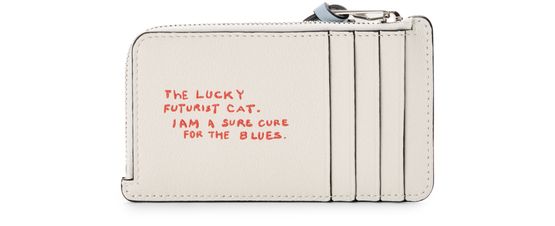 Porte-cartes et monnaie en cuir de veau classique avec motif Futurist Cat en marqueterie de cuir et lettrage imprimé à l'arrière. Ce porte-cartes s’inspire de la série de vases en porcelaine « Futurist Cats » de Louis Wain.