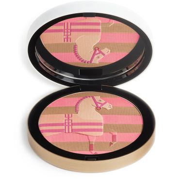 La poudre de soie Rocabar en édition limitée rend hommage au dessin du carré Rocabar, imaginé par Henri d’Origny et inspiré des couvertures dont on recouvrait les chevaux de course au XIXe siècle. Elle dépose sur la peau un hâle naturel lumineux et longue tenue, aux reflets rosés.