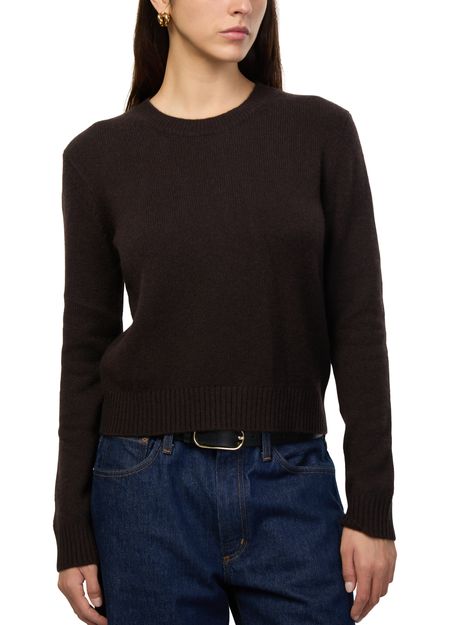 Découvrez le pull col rond en cachemire Mable Lisa Yang, confectionné dans une matière chinée à bords-côtes. Sa coupe courte, son col rond et ses manches longues apportent une allure contemporaine, idéale à associer aussi bien avec un pantalon habillé qu’un jean décontracté.