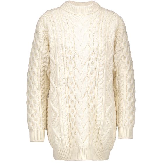 • Description : Pull col rond en laine et cachemire à motifs Aran.