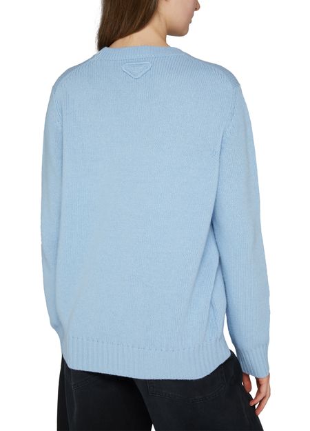 Le pull col rond en laine et cachemire de Prada se distingue par sa matière chinée et sa coupe slim. Avec ses manches longues et ses poignets resserrés, il offre une silhouette élégante. Les bords-côtes ajoutent une touche de finition raffinée, alliant confort et sophistication pour des moments inoubliables.