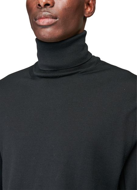 • Description : Pull manches longues, coupe cintrée, bords-côtes, col roulé.