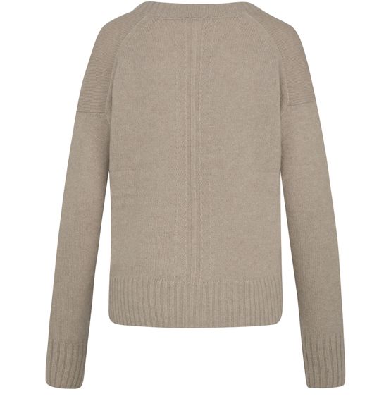 • Description : Pull en maille, manches longues, poignets resserrés, emmanchure basse, bords-côtes, encolure en V, motif au dos.