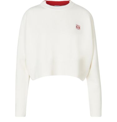 Loewe présente le pull court Anagram. Cette pièce monochrome offre un design épuré et est signée par la maison espagnole à l'aide d'un logo contrasté sur le cœur.