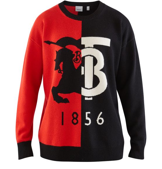 Pull en cachemire tricolore, orné d'un logo tricoté en intarsia composé de motif Monogram et de notre emblème du Cavalier.