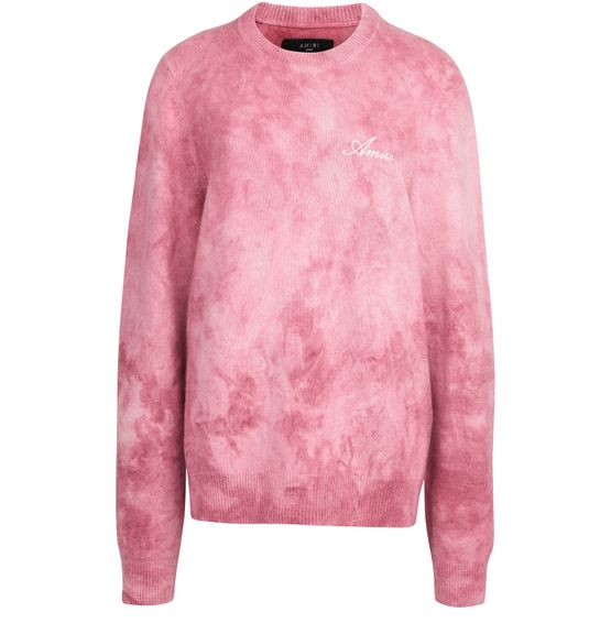 Description : Pull col rond, bords-côtes, logo brodé sur la poitrine, motif tie-dye, effet marbré, texture douce.