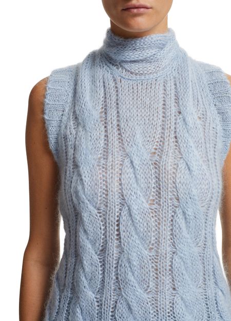 Déposez une touche de douceur dans votre look avec le pullover sans manches. Ce pull sans manches signé Prada met en valeur une maille torsadée subtilement vintage.