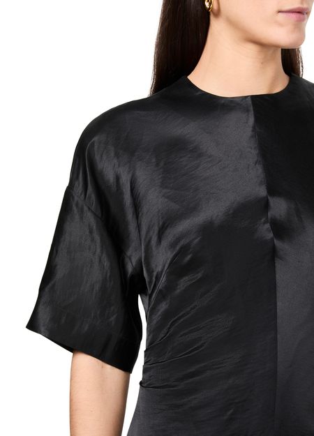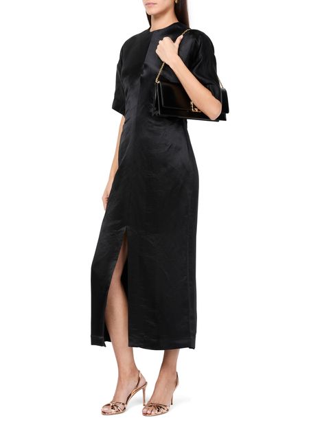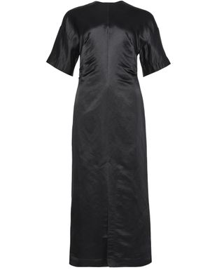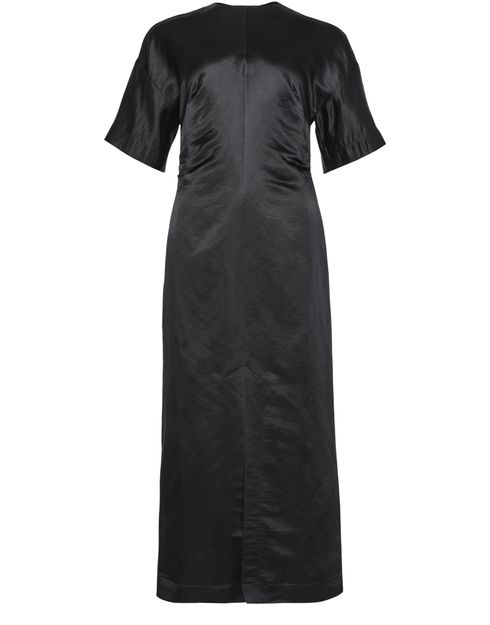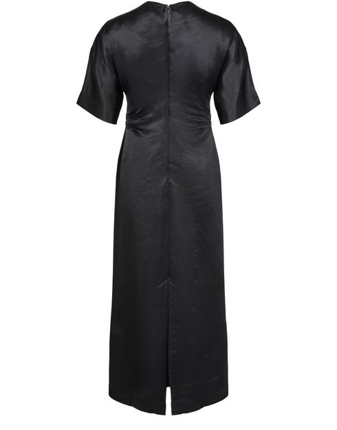 • Description : surpiqûre visible, robe midi, manches courtes, encolure ras du cou, soirée et cocktails.