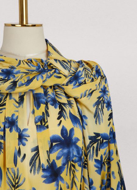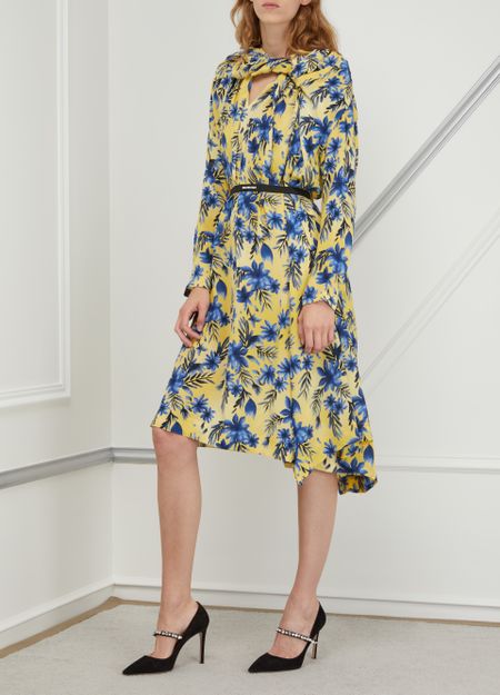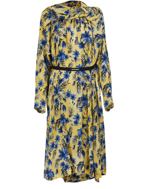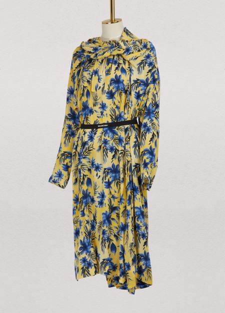 Pour sa nouvelle collection Balenciaga, le designer Demna Gvasalia joue avec les proportions de cette robe à manches longues pour créer un style singulier. Le mouvement est au cœur de cette pièce solaire à motif floral contrastant. On ose l'assortir à une paire de bottines en tweed aperçue lors du défilé.
