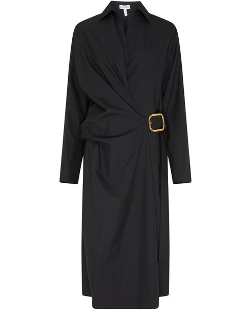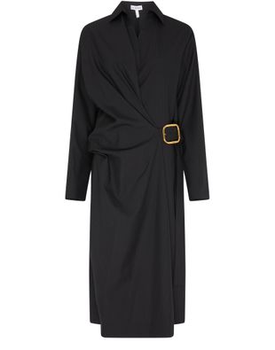 La robe avec ceinture en laine de Loewe incarne l'élégance intemporelle. Avec son col de chemise, ses manches longues et sa coupe trapèze, elle flatte toutes les silhouettes. Les finitions dorées et le logo appliqué ajoutent une touche de luxe, tandis que les poignets boutonnés et le détail drapé révèlent un savoir-faire exceptionnel.