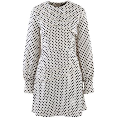 La marque Alexa Chung présente une robe courte à pois fluide et légère traversée par plusieurs lignes de volants sur le buste et les hanches.