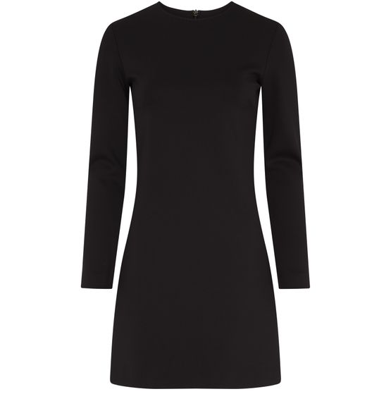 • Description : fermeture à glissière dissimulée au dos, logo appliqué, surpiqûre visible, mini robe, encolure ras du cou, manches longues, soirée et cocktails, coupe trapèze, taille resserrée.