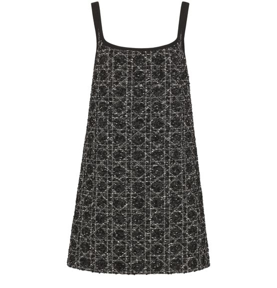 Découvrez la robe courte Macrocannage de Dior. Fabriquée en Italie, elle se distingue par ses élégantes bretelles en gros-grain et sa doublure noire chic. Conçue dans un mélange de 54% coton, 27% acrylique et 19% polyamide, cette robe incarne une silhouette moderne aux détails raffinés.