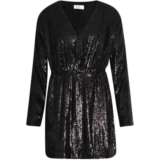 • Description : Entièrement brodée de sequins, décolleté, manches longues, froncée à la taille.