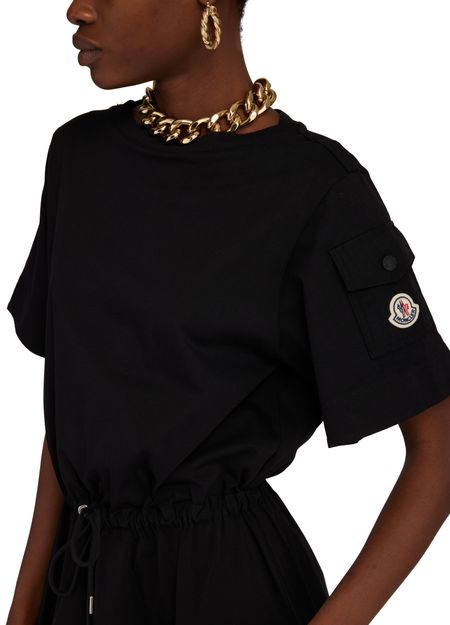 Découvrez la robe évasée Moncler, parfaite pour toutes les occasions. Dotée d'un logo appliqué sur le côté et d'une encolure ras du cou, cette mini robe est à la fois élégante et décontractée. Les manches courtes, les poches à rabat et la taille ajustable par cordon coulissant en font une pièce tendance et pratique.