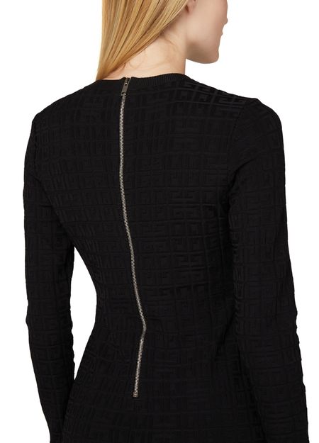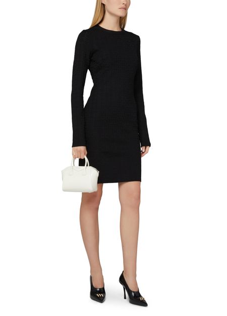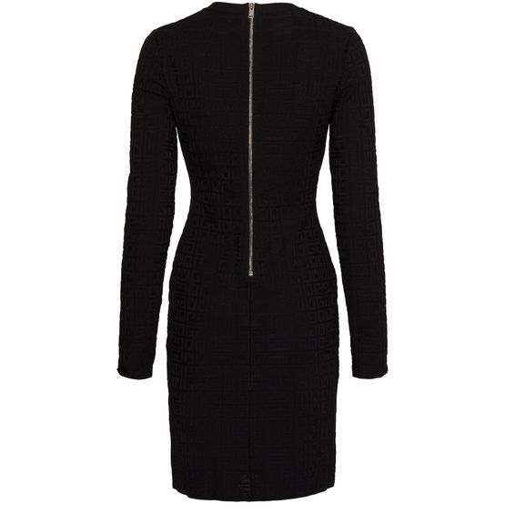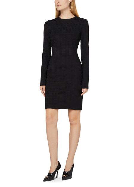 La robe en jacquard 4G de Givenchy est une robe courte avec des manches longues et un col rond. Elle est dotée d'une fermeture à glissière au dos et présente un logo all-over ainsi qu'un motif jacquard. Cette pièce élégante et sophistiquée est parfaite pour une occasion spéciale.