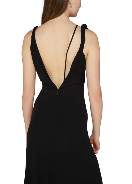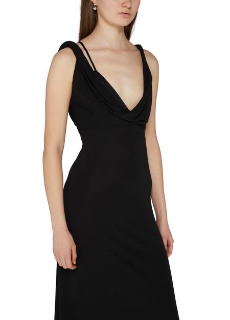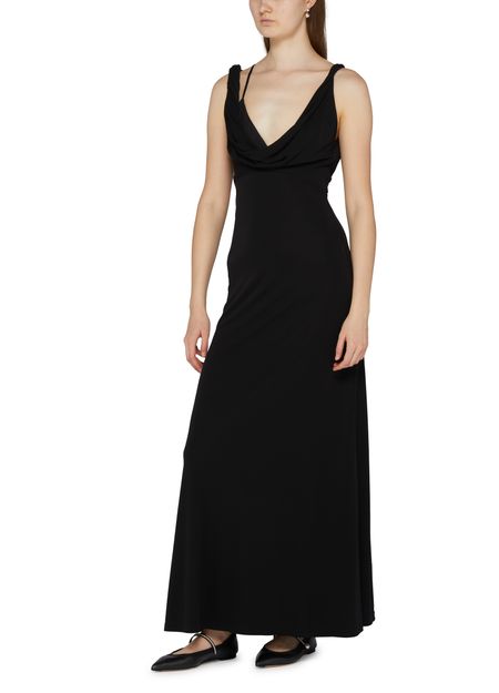 La robe longue drapée effet torsadé de Toteme incarne l'élégance intemporelle. Sans manches, elle dévoile un col en V au dos, tandis qu'une fermeture à glissière dissimulée assure un ajustement parfait. Sa coupe évasée et ses surpiqûres visibles créent un jeu de textures fascinant, parfaite pour une soirée inoubliable.