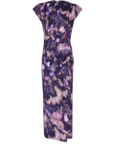 La robe longue Nadela d'Etoile Isabel Marant se distingue par son détail drapé et son imprimé all-over captivant. Avec une encolure montante et des manches courtes, elle offre une silhouette élégante. Les surpiqûres visibles et le logo appliqué ajoutent une touche raffinée, parfaite pour les soirées et cocktails. Une pièce incontournable.