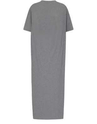 La robe longue Simon de The Row incarne l'élégance intemporelle. Avec ses manches courtes et son encolure ras du cou, elle offre une silhouette raffinée. L'étiquette avec logo à l’arrière souligne son authenticité, faisant de cette pièce un incontournable pour toute garde-robe moderne et sophistiquée.