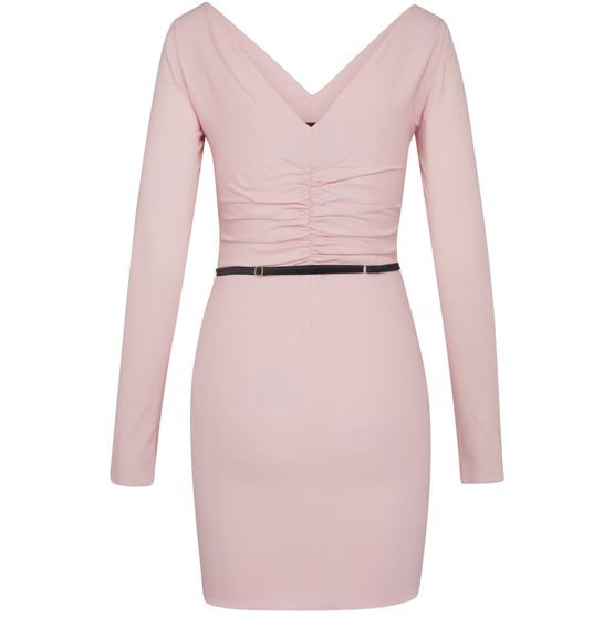 Description : Robe drapée, matière fluide, décolleté plongeant, encolure à bretelles, coupe slim.