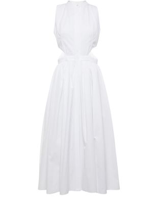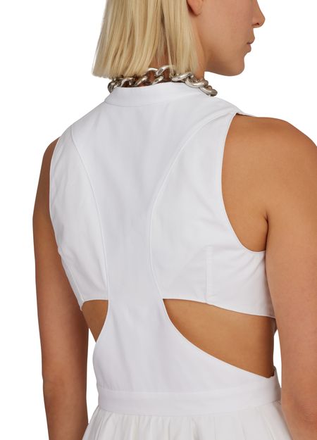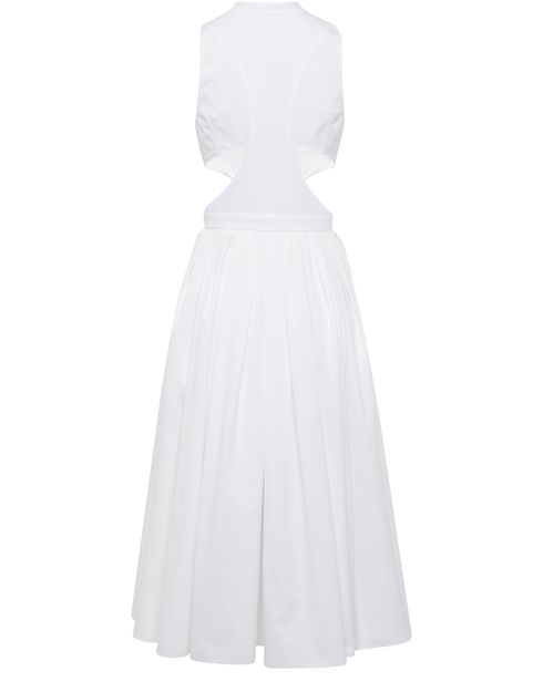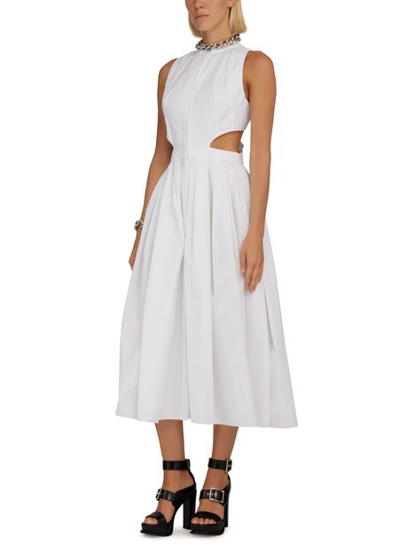 La robe évasée Alexander McQueen présente une longueur midi et une encolure ras du cou. Sans manches, elle arbore des découpes graphiques et des détails plis et fronces, offrant ainsi une silhouette élégante et structurée. Parfaite pour une soirée spéciale ou une occasion formelle, cette robe est un must-have pour toute garde-robe sophistiquée.