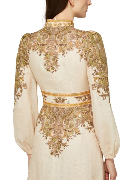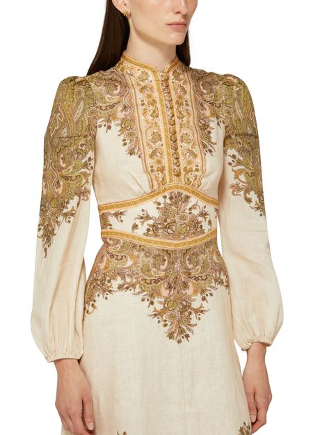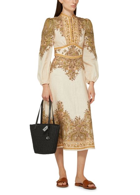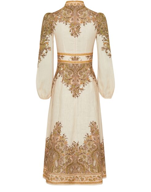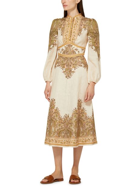 La robe midi boutonnée Natura de Zimmermann incarne l'élégance. Avec ses manches longues et son motif cachemire délicat, elle est parfaite pour les soirées et cocktails. Le col en v sublime le décolleté, tandis que la fermeture à glissière au dos et l'étiquette avec logo à l’arrière ajoutent une touche raffinée.