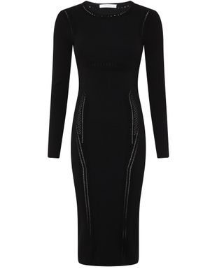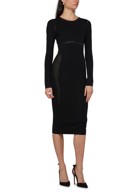 La robe midi Max Mara Comica est une pièce élégante et intemporelle avec des manches longues et une encolure ras du cou. Elle présente une longueur genou et une taille resserrée pour mettre en valeur la silhouette. L'étiquette avec logo à l'arrière ajoute une touche de sophistication discrète à ce vêtement classique.