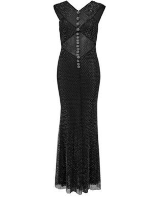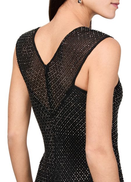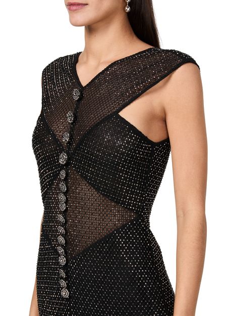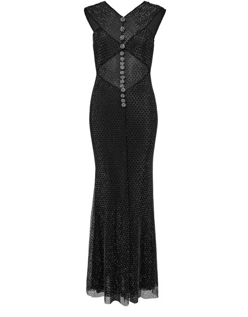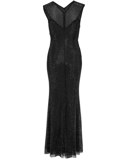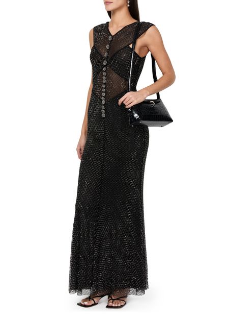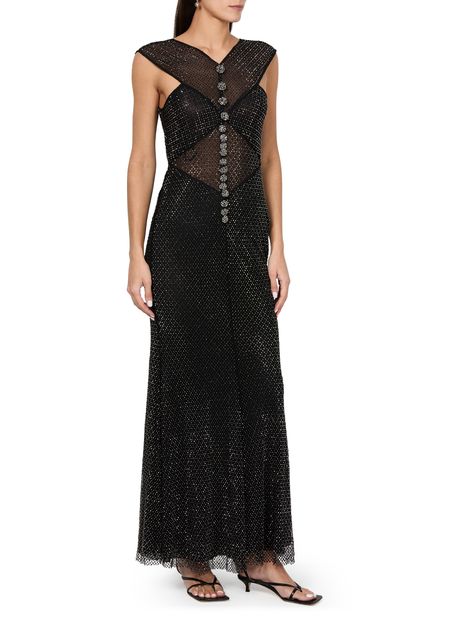 SELF PORTRAITRobe longue en tissu façon filet à bretelles croisées ornée de strass