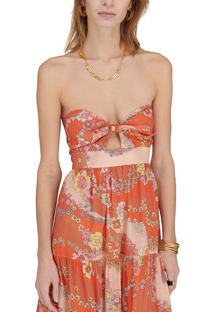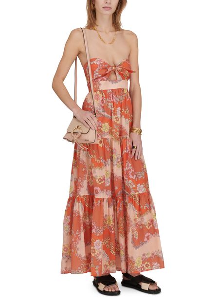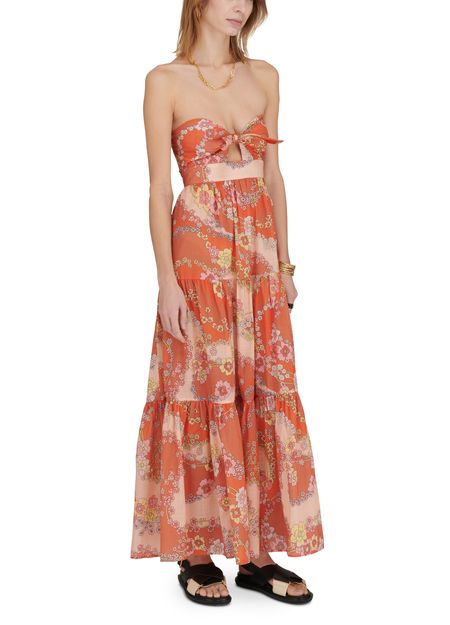 La robe midi Lola de Zimmermann présente une coupe évasée et des épaules dénudées, avec une encolure en cœur et une taille empire. Dotée d'un motif fleuri et d'un imprimé multicolore, elle est agrémentée de détails plissés et froncés ainsi que de godets. Une pièce élégante et féminine pour toutes les occasions.