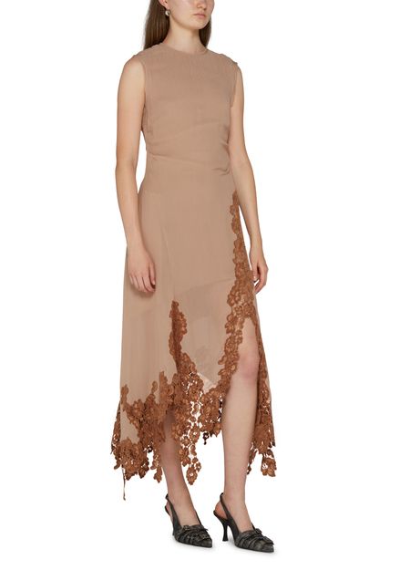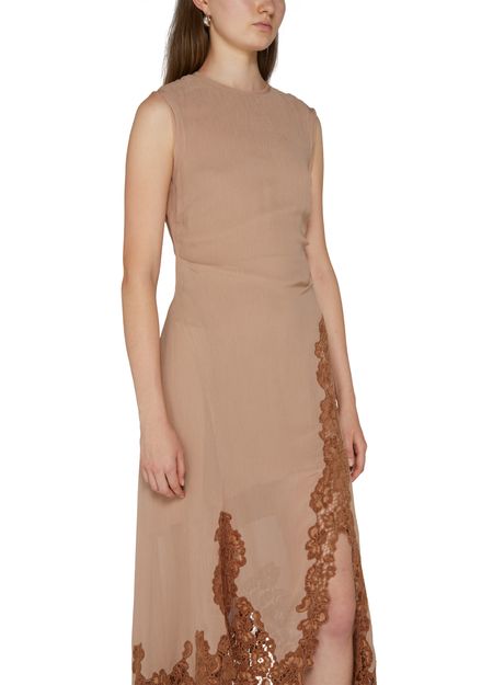 • Description : fermeture à glissière au dos, détails dentelle, logo appliqué, étiquette avec logo à l’arrière, surpiqûre visible, robe midi, sans manches, robe évasée, encolure ras du cou, fente à gauche sur le devant.