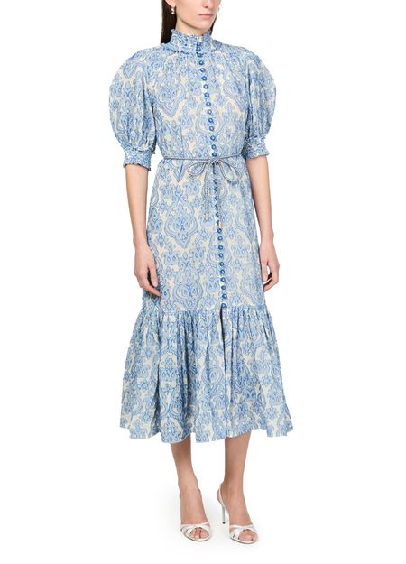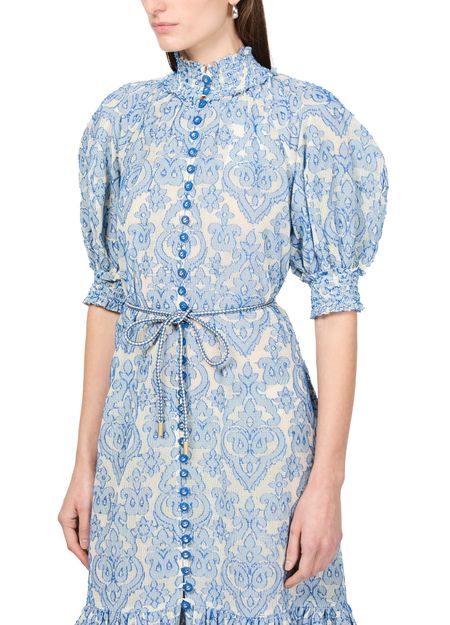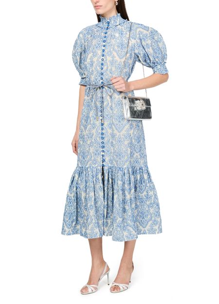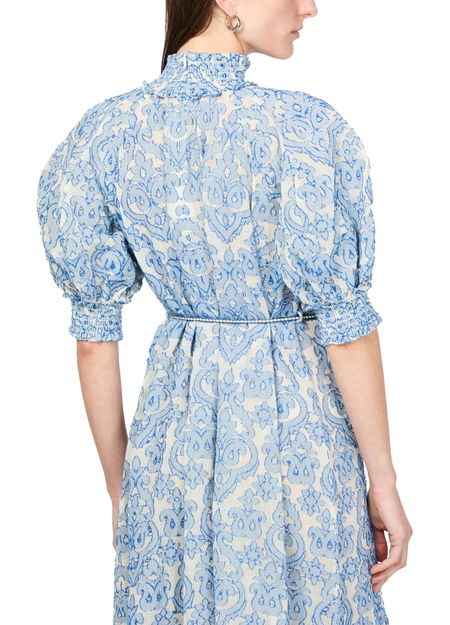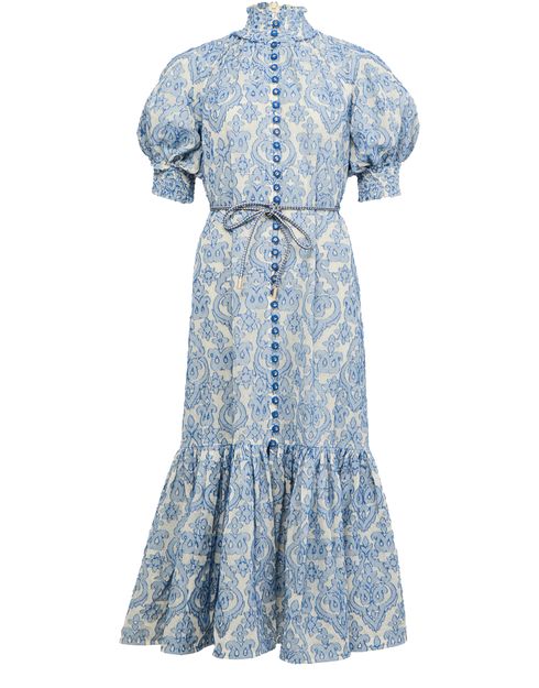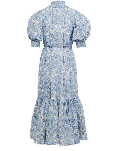 La robe midi Wylie de Zimmermann incarne l'élégance avec son imprimé all-over en motif cachemire. Les manches courtes et l'encolure montante soulignent la silhouette, tandis que la taille ceinturée met en valeur la taille. Les étages fluides ajoutent une touche de romantisme, créant une pièce intemporelle et raffinée.