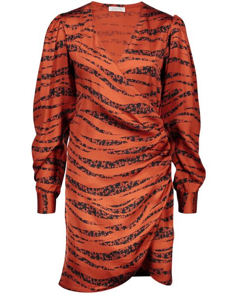 Annie Bing vous propose sa robe Pénélope en soie. Un imprimé animal tigré très tendance pour cette robe cache-cœur à manches longues et boutonnées aux poignets.
