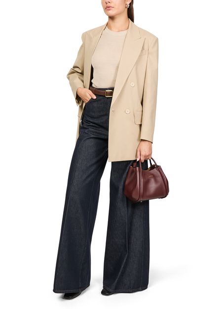 Découvrez le sac à main Marine de Max Mara. Ce modèle épuré en cuir lisse arbore un logo métallique sur le devant. Doté de doubles poignées en cuir et d'une large sangle réglable, il peut être porté à l'épaule ou en bandoulière pour une élégance contemporaine.