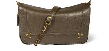Découvrez le sac à bandoulière Jerome Dreyfuss, confectionné en cuir grainé avec poignée unique et bandoulière chaîne. Les finitions dorées, les coutures apparentes et les détails de clous subliment ce modèle, tandis que la fermeture à glissière assure une allure contemporaine et pratique.