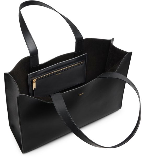 Découvrez le sac cabas Easy Bally, confectionné en cuir lisse et rehaussé de finitions dorées. Ses poignées doubles et son grand compartiment intérieur allient élégance et fonctionnalité, tandis que le logo à l'avant en lettres dorées signe l’allure. Une poche intérieure zippée garde vos essentiels en sécurité.