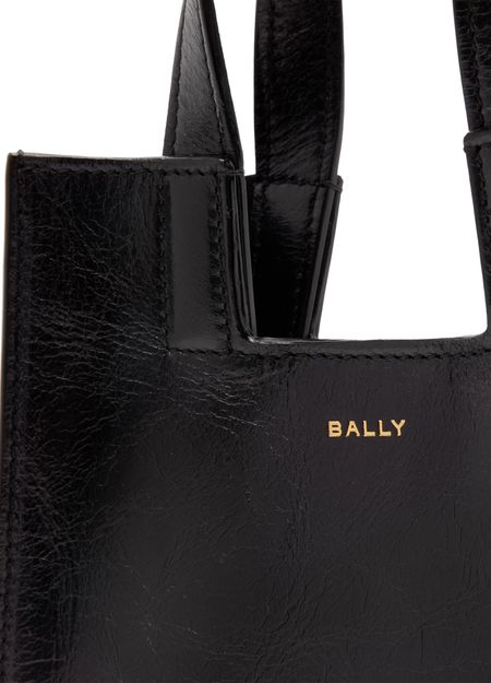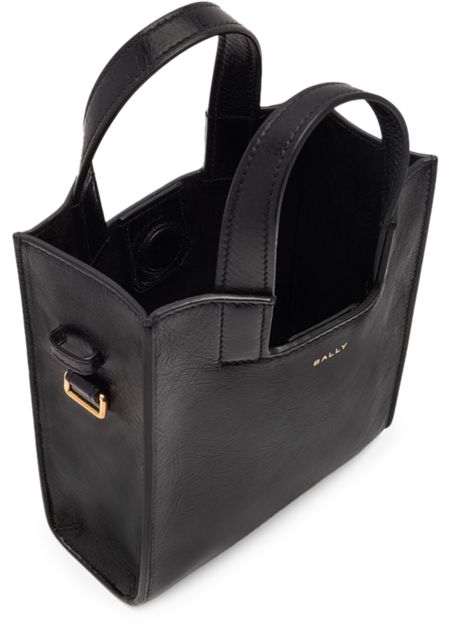 Découvrez le sac cabas Easy XS Bally, confectionné en cuir lisse avec poignée double et bandoulière fine ajustable. Son logo à l'avant en lettres dorées, ses coutures apparentes et ses finitions dorées soulignent une allure contemporaine et sophistiquée, idéale au quotidien.