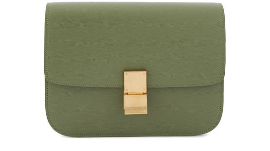 La maison Celine joue la carte du classicisme raffiné avec cette pièce iconique. Le sac Classique Moyen Modèle en veau liégé se veut pratique et élégant grâce à sa forme carrée et à la douceur de sa matière en cuir de veau. On l'associe à une robe en satin et une paire de sandales à talons pour un look sensuel.