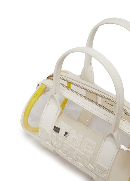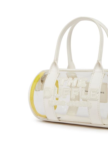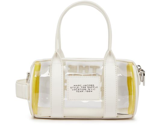 Le sac de sport The Clear mini Duffle de Marc Jacobs allie style et praticité. Avec sa poignée double et sa bandoulière fine amovible, il se porte à la main ou sur l'épaule. Sa fermeture à glissière sécurisée et le logo à l'avant ajoutent une touche de modernité à votre look.