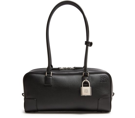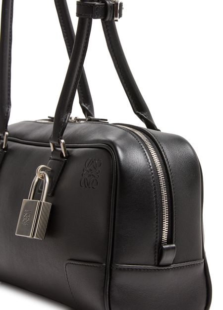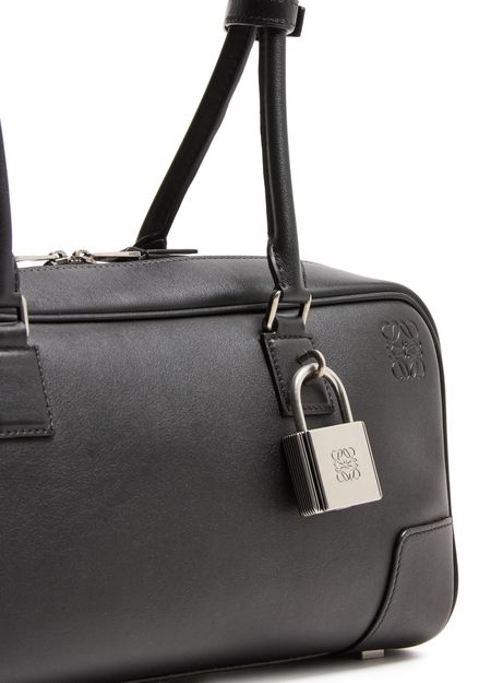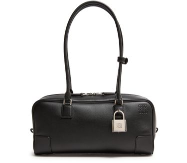 Découvrez le sac en cuir de veau brillant Amazona 23 Cropped de Loewe, confectionné en cuir lisse avec poignée double et fermeture à glissière. Le médaillon Anagram et le logo embossé à l'avant soulignent l’élégance, tandis que les coutures apparentes et les finitions argentées apportent une touche contemporaine.