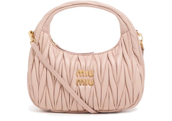 Découvrez le sac hobo en cuir nappa matelassé Wander de Miu Miu, une harmonie parfaite entre style et praticité. Son logo métallique et son détail en chevron soulignent son élégance. La poignée unique et la bandoulière amovible ajoutent de la polyvalence, avec une fermeture à glissière pour vos essentiels dans une texture capitonnée.