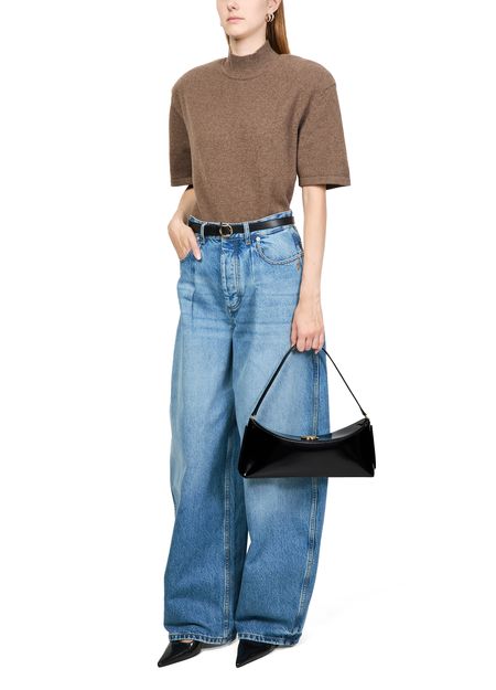 Adoptez la pochette Ovalo de Jacquemus, avec ses lignes épurées et son cuir de veau brossé et brillant. Ce sac porté épaule se distingue par sa bandoulière fine, ses surpiqûres visibles et sa finition dorée. Sa fermeture magnétique élégante assure une praticité sans compromis sur le style.