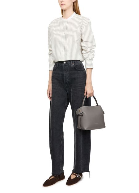 Découvrez le sac moyen Swann de Fleuron, où l'élégance rencontre la fonctionnalité. Ce sac présente un compartiment unique avec une poche intérieure, sécurisé par une fermeture boutons-pression. La bandoulière ajustable et amovible et les surpiqûres apparentes ajoutent à son allure moderne, tandis que les finitions dorées et le logo à l'avant soulignent son élégance raffinée.