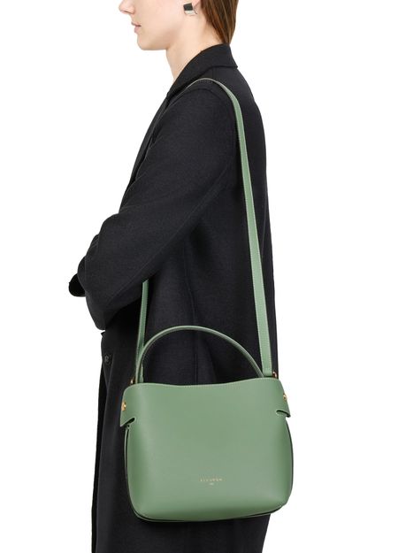 Découvrez le sac medium Swann de Fleuron, doté d'une fermeture magnétique élégante, de fentes intérieures pour cartes et d'une poignée en cuir raffinée. Ce sac polyvalent, avec sa bandoulière amovible, peut être porté à la main ou en crossbody. Le logo frontal et les surpiqûres apparentes ajoutent une touche d'élégance.