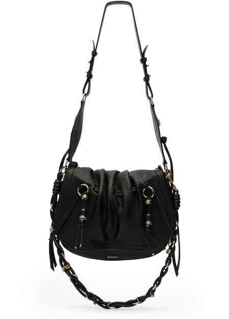 Découvrez le sac porté épaule en cuir grainé Isabel Marant, sublimé par une bandoulière chaîne décorative et des finitions dorées. Les coutures apparentes et les détails de perles témoignent d’un savoir-faire raffiné, tandis que la fermeture par cordon coulissant assure une allure contemporaine et fonctionnelle.
