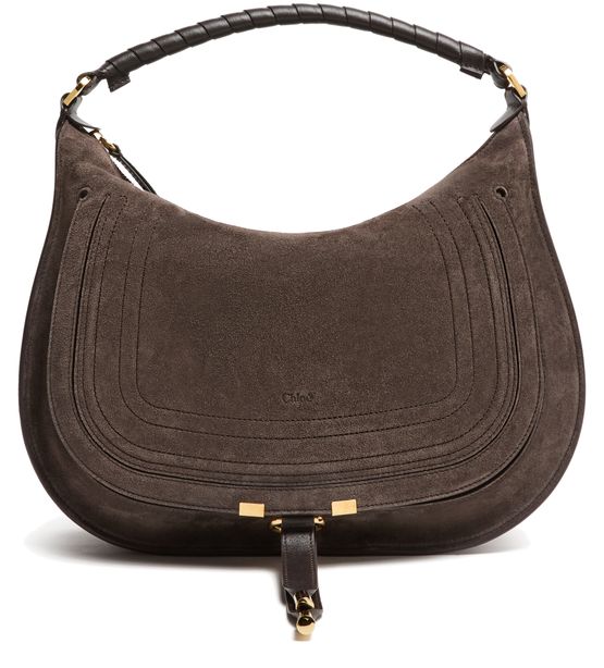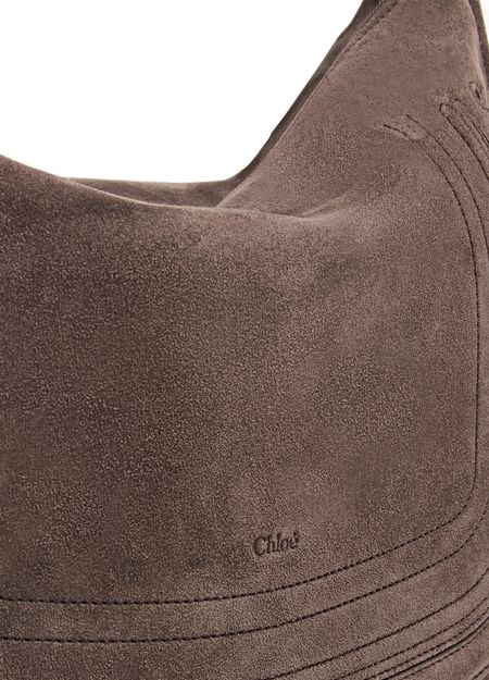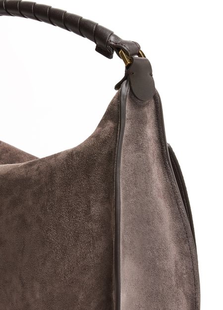 Découvrez le sac porté épaule Marcie de Chloe, confectionné en cuir velours avec piqûres sellier signature et finitions dorées. Sa poignée unique, sa fermeture à glissière et sa poche intérieure ouverte soulignent une élégance fonctionnelle, rehaussée par le logo embossé à l'avant.