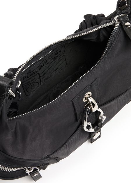 Découvrez le sac porté épaule Mechanical de Published By, avec sa fermeture éclair élégante et ses surpiqûres visibles. Ce mini sac se distingue par une finition argentée, un compartiment unique, et une bandoulière détachable. Portez-le à la main ou à l'épaule, avec des poches extérieures et une fine sangle pour plus d'élégance.
