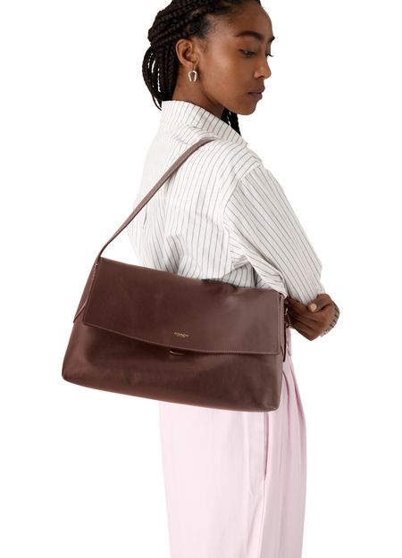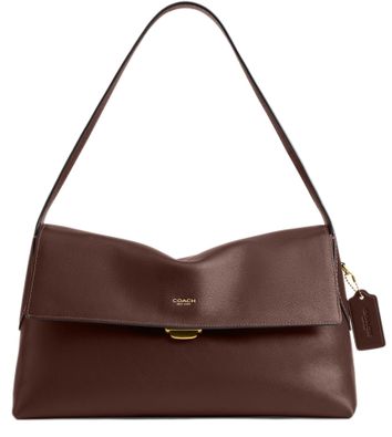 Découvrez le sac porté épaule moyen Flap Coach, confectionné en cuir lisse avec une étiquette décorative et un logo embossé. Les finitions dorées, les coutures apparentes et la doublure contrastante soulignent son allure moderne, tandis qu'une poche intérieure zippée offre une organisation élégante.