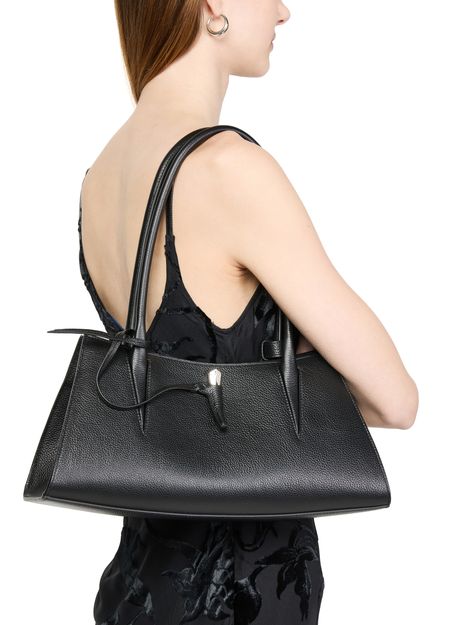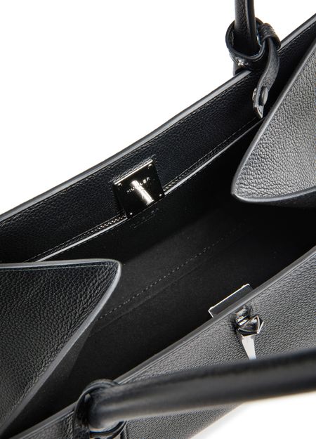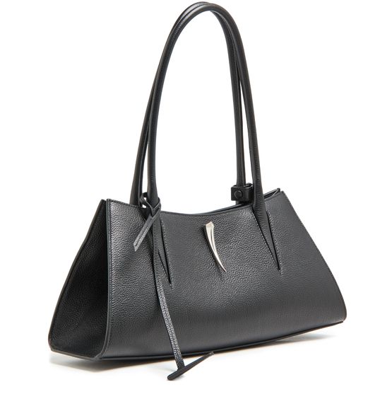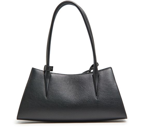 • Description : fermoir aimanté, surpiqûres apparentes, logo gravé, logo à l'avant, compartiment unique, porté main, porté épaule, sac baguette, bandoulière fine, poignée double.