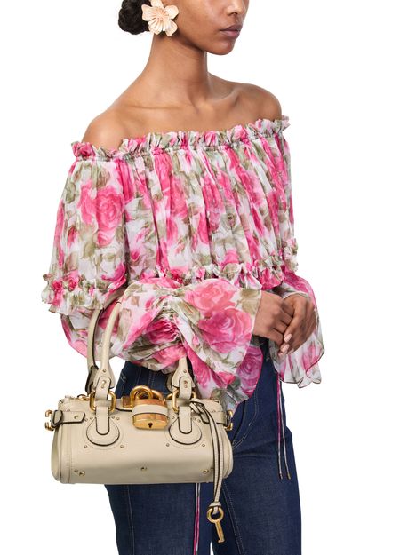 Découvrez le petit sac Paddington de Chloé, doté d'une poignée double, de finitions dorées et de coutures apparentes. Les détails de clous soulignent son allure contemporaine, tandis que son design raffiné sublime chaque tenue avec élégance et caractère.